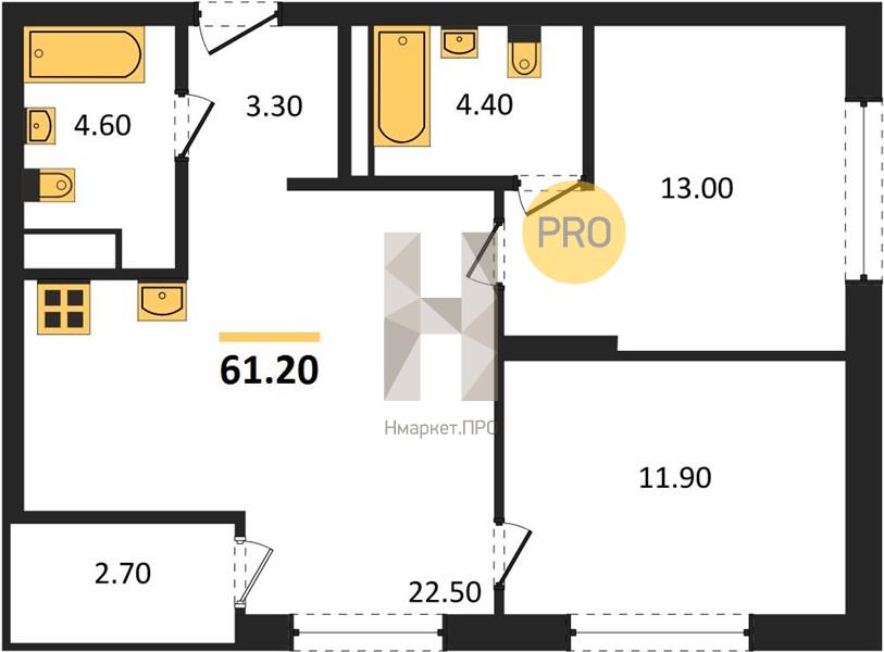 | Общая площадь: | 60.80 м2 |