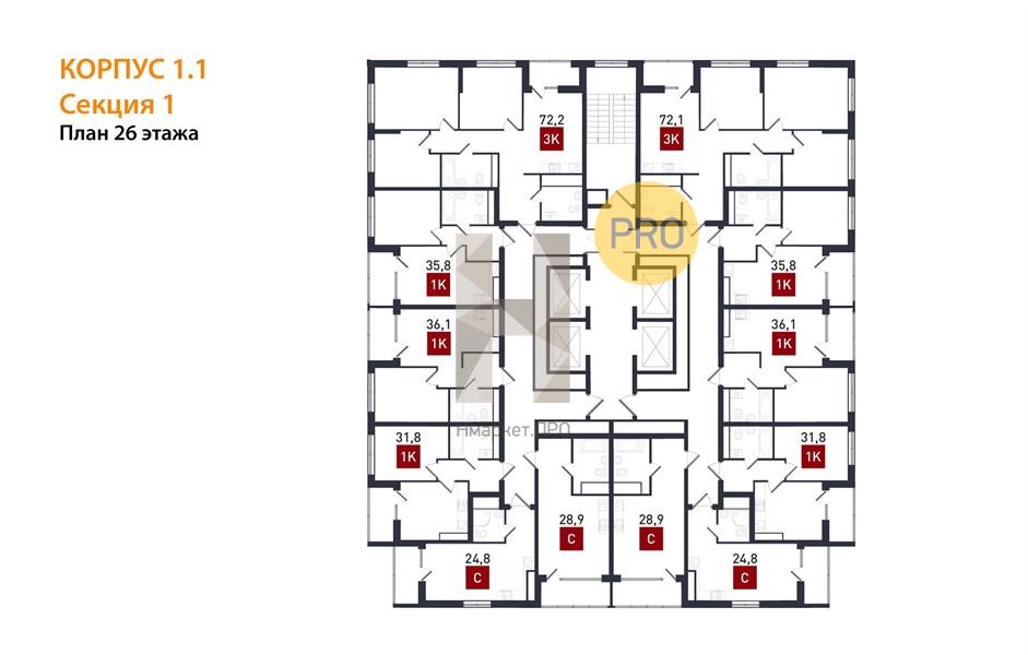 Студия: 29,40 кв.м., 26 этаж в комплексе Русь, 2 очередь, корп.1.1, сдача: 3кв. , этажей: 31, адрес Екатеринбург г., Крауля ул., д. 105, Застройщик: TEN девелопмент.