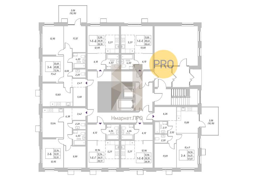 Квартира: 2 к 57,07 кв.м., 2 этаж в комплексе Riverside, 2 очередь, корп.5, сдача: 2кв. , этажей: 14, адрес Екатеринбург г., Крауля ул., , Застройщик: Унистрой.