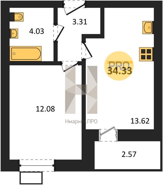 Квартира: 1 к 34,33 кв.м., 13 этаж в комплексе Riverside, 2 очередь, корп.4, сдача: 2кв. , этажей: 24, адрес Екатеринбург г., Крауля ул., , Застройщик: Унистрой.