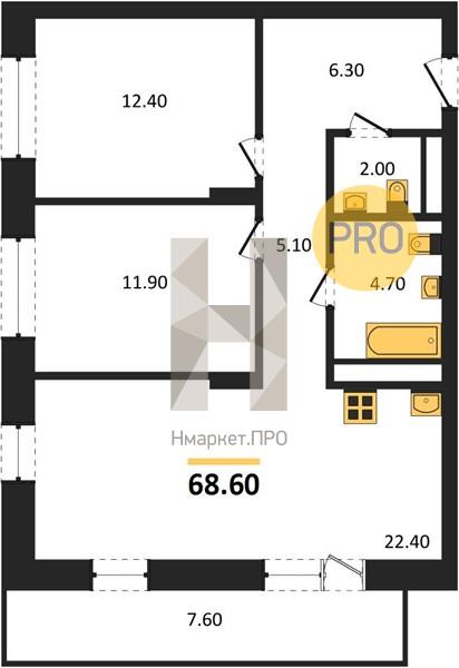 Квартира: 2 к 69,00 кв.м., 5 этаж в комплексе Riverside, 1 очередь, корп.2, сдача: 4кв. , этажей: 5, адрес Екатеринбург г., Крауля ул., , Застройщик: Унистрой.