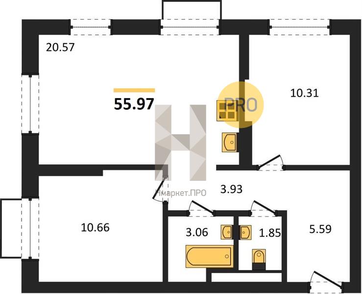 | Общая площадь: | 55.97 м2 |