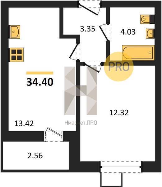 | Общая площадь: | 34.40 м2 |