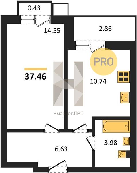 Квартира: 1 к 37,46 кв.м., 20 этаж в комплексе Riverside, 2 очередь, корп.4, сдача: 2кв. , этажей: 24, адрес Екатеринбург г., Крауля ул., , Застройщик: Унистрой.