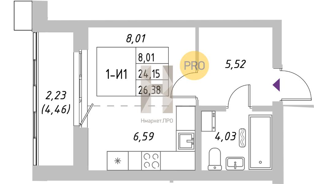 Студия: 26,38 кв.м., 21 этаж в комплексе Riverside, 2 очередь, корп.4, сдача: 2кв. , этажей: 24, адрес Екатеринбург г., Крауля ул., , Застройщик: Унистрой.