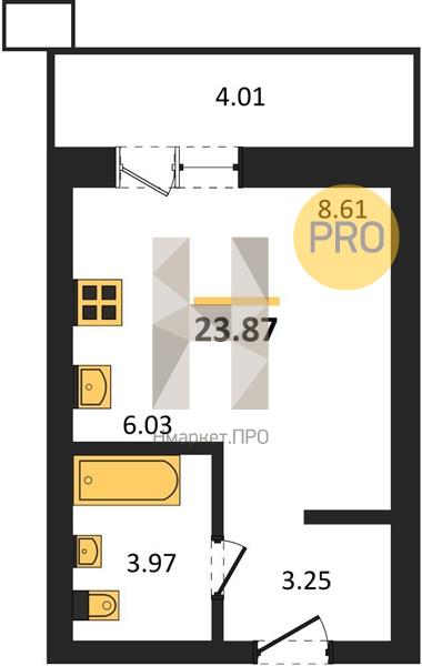 Студия: 23,87 кв.м., 21 этаж в комплексе Riverside, 2 очередь, корп.4, сдача: 2кв. , этажей: 24, адрес Екатеринбург г., Крауля ул., , Застройщик: Унистрой.