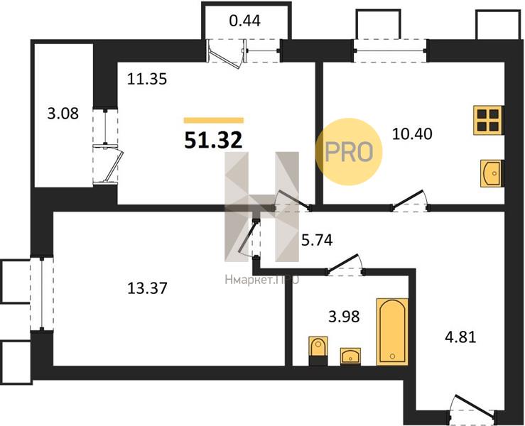 Квартира: 2 к 51,32 кв.м., 22 этаж в комплексе Riverside, 2 очередь, корп.4, сдача: 2кв. , этажей: 24, адрес Екатеринбург г., Крауля ул., , Застройщик: Унистрой.