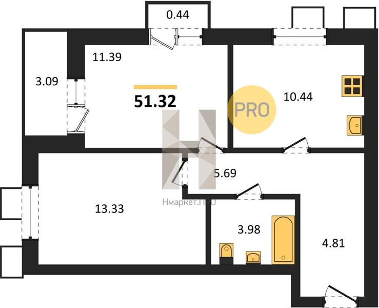| Общая площадь: | 51.32 м2 |