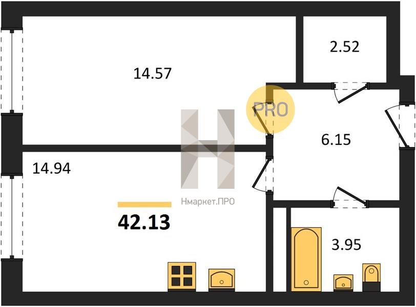 Квартира: 1 к 42,13 кв.м., 5 этаж в комплексе Riverside, 2 очередь, корп.3, сдача: 2кв. , этажей: 10, адрес Екатеринбург г., Крауля ул., , Застройщик: Унистрой.