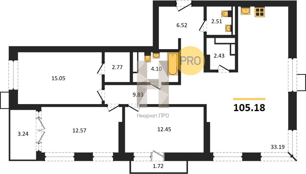 | Общая площадь: | 105.18 м2 |