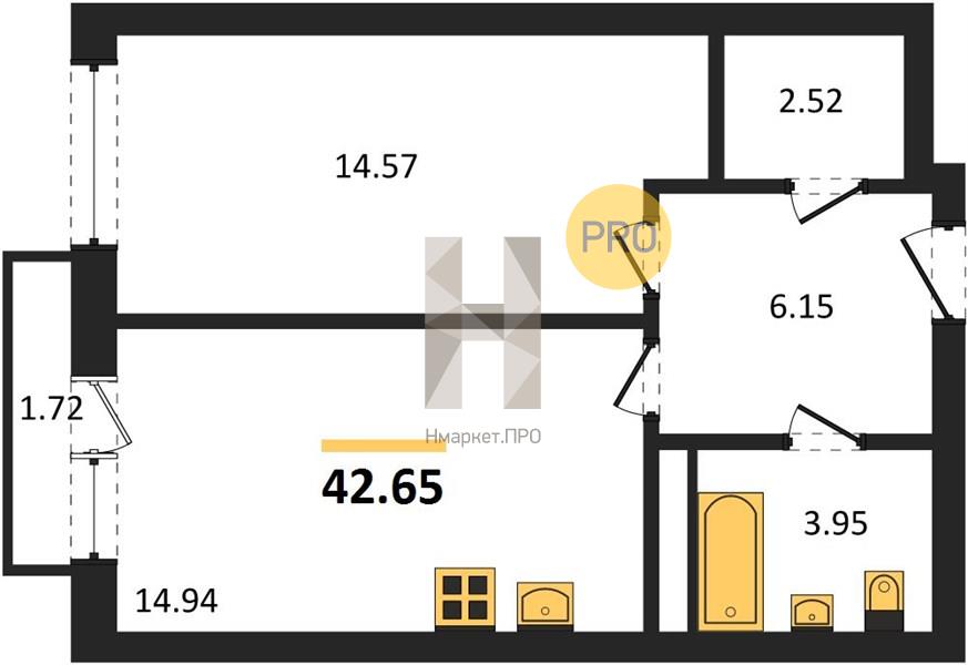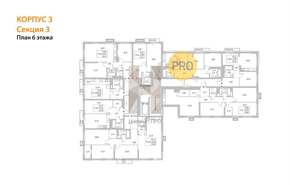 Квартира: 1 к 42,65 кв.м., 6 этаж в комплексе Riverside, 2 очередь, корп.3, сдача: 2кв. , этажей: 10, адрес Екатеринбург г., Крауля ул., , Застройщик: Унистрой.