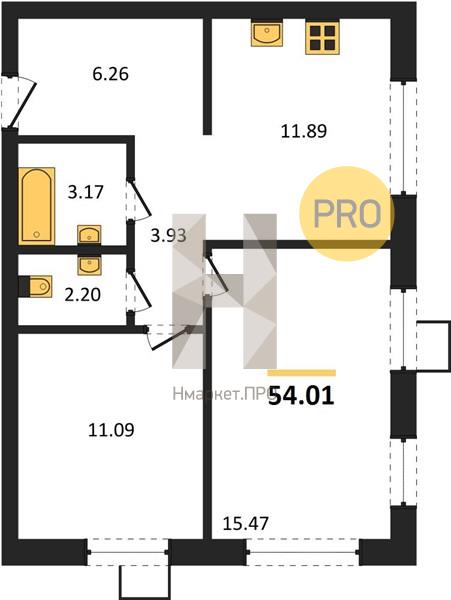 Квартира: 2 к 54,01 кв.м., 7 этаж в комплексе Riverside, 2 очередь, корп.5, сдача: 2кв. , этажей: 14, адрес Екатеринбург г., Крауля ул., , Застройщик: Унистрой.