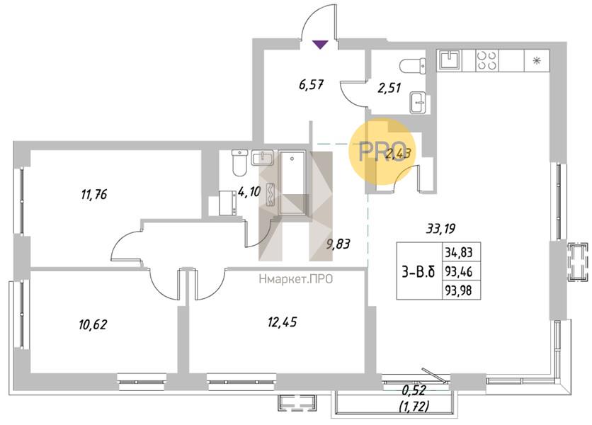 Квартира: 3 к 93,98 кв.м., 10 этаж в комплексе Riverside, 2 очередь, корп.3, сдача: 2кв. , этажей: 10, адрес Екатеринбург г., Крауля ул., , Застройщик: Унистрой.