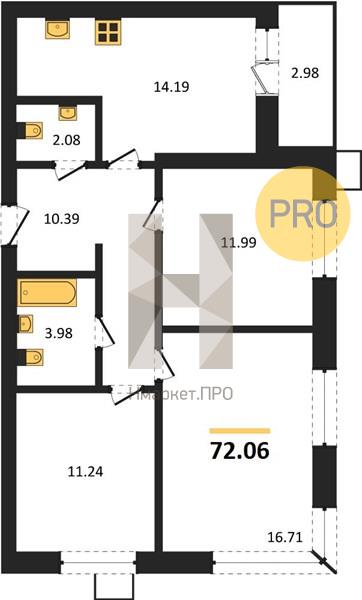 Квартира: 3 к 72,06 кв.м., 10 этаж в комплексе Riverside, 2 очередь, корп.4, сдача: 2кв. , этажей: 24, адрес Екатеринбург г., Крауля ул., , Застройщик: Унистрой.