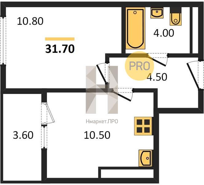 Купить 1-комнатную квартиру, 32.10 м2 № 4682519