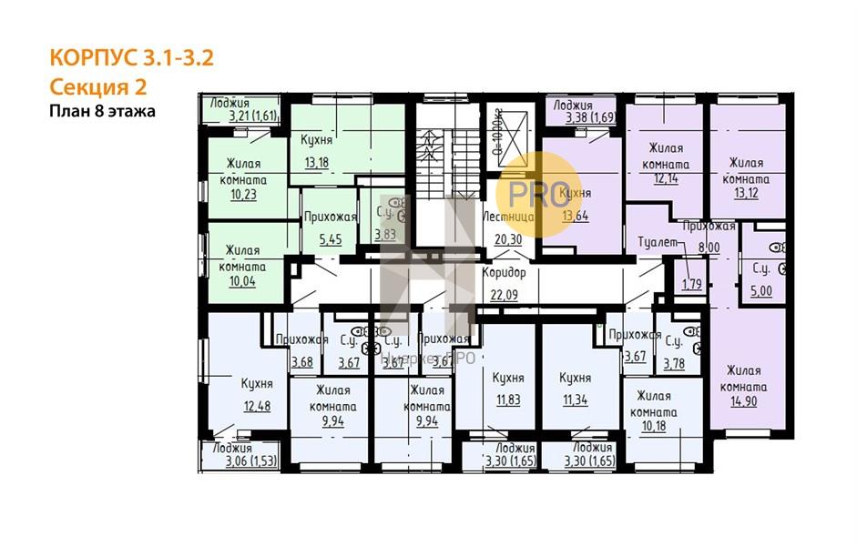| Площадь кухни: | 12.48 м2 |