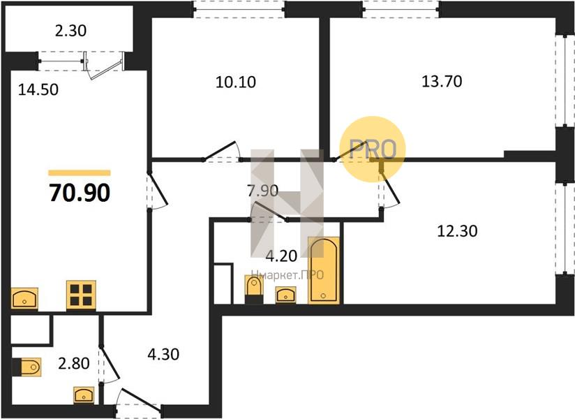 | Общая площадь: | 72.10 м2 |