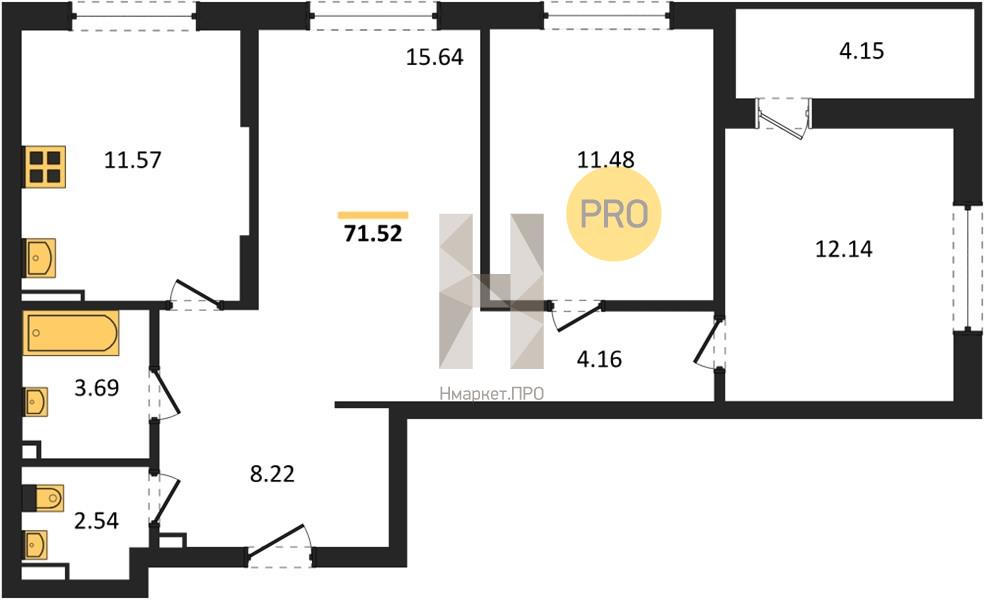 Квартира: 3 к 70,79 кв.м., 13 этаж в комплексе Янтарная долина, 5 очередь, корп.5, сдача: 4кв. , этажей: 21, адрес Екатеринбург г., Крауля ул., д. 170а, Застройщик: Стройтэк.