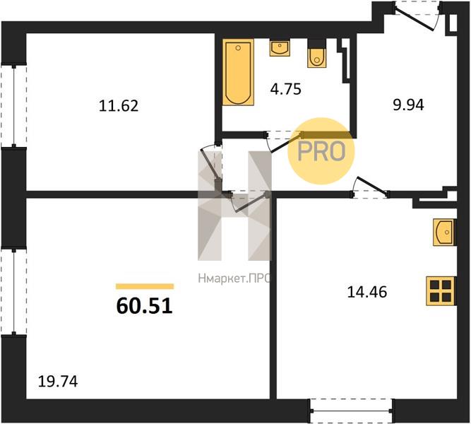 Квартира: 2 к 60,51 кв.м., 2 этаж в комплексе Янтарная долина, 5 очередь, корп.5, сдача: 4кв. , этажей: 21, адрес Екатеринбург г., Крауля ул., д. 170а, Застройщик: Стройтэк.