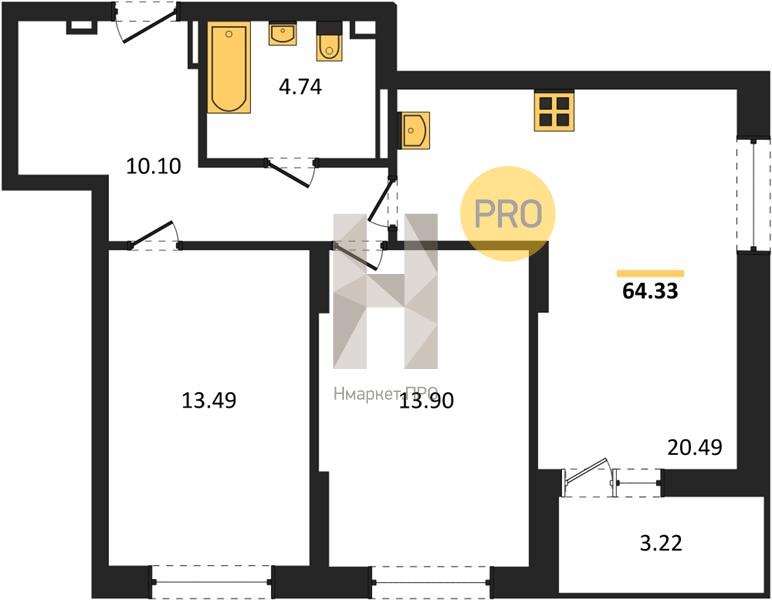 Квартира: 2 к 64,33 кв.м., 1 этаж в комплексе Янтарная долина, 5 очередь, корп.5, сдача: 4кв. , этажей: 21, адрес Екатеринбург г., Крауля ул., д. 170а, Застройщик: Стройтэк.
