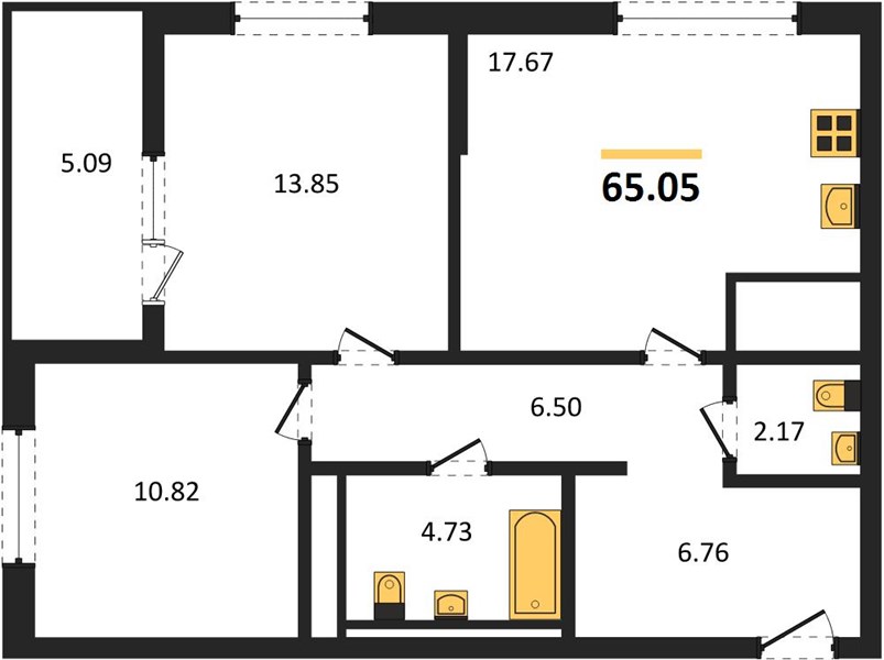 Квартира: 2 к 65,05 кв.м., 13 этаж в комплексе Куйбышева 100, 1 очередь, корп.1.1, сдача: 4кв. , этажей: 25, адрес Екатеринбург г., Куйбышева ул., д. 100, Застройщик: Премьерстрой.