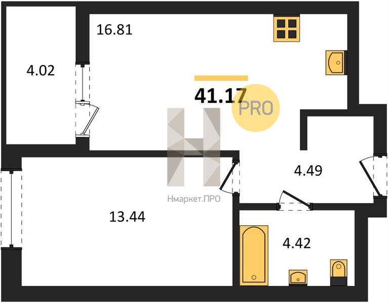 | Общая площадь: | 41.17 м2 |
