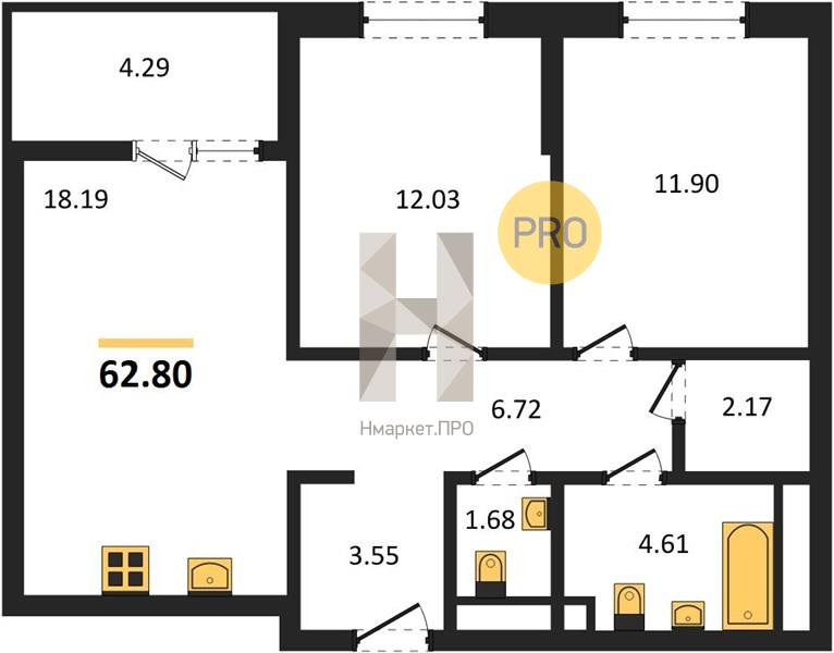 | Общая площадь: | 62.80 м2 |
