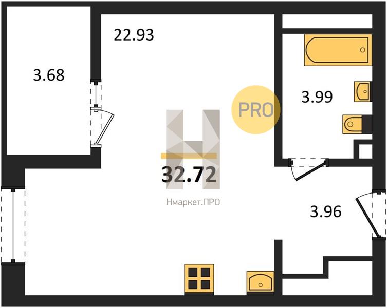 Студия: 32,72 кв.м., 3 этаж в комплексе Куйбышева 100, 1 очередь, корп.1.2, сдача: 4кв. , этажей: 24, адрес Екатеринбург г., Куйбышева ул., д. 100, Застройщик: Премьерстрой.