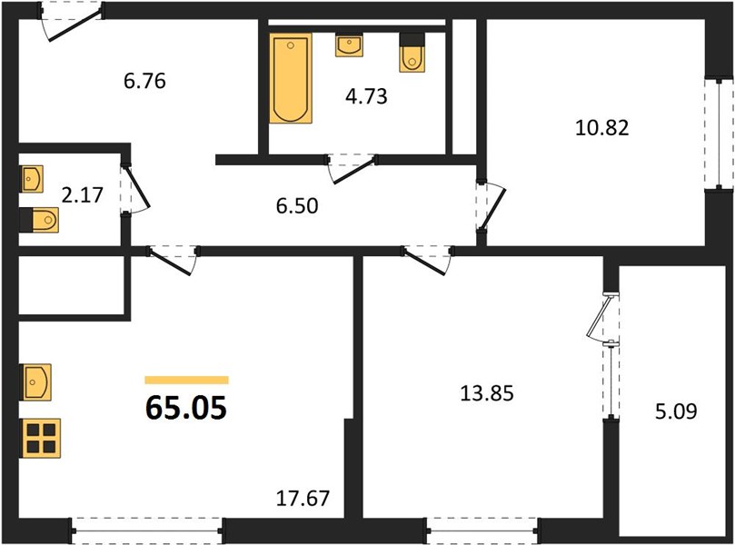 Квартира: 2 к 65,05 кв.м., 6 этаж в комплексе Куйбышева 100, 1 очередь, корп.1.2, сдача: 4кв. , этажей: 24, адрес Екатеринбург г., Куйбышева ул., д. 100, Застройщик: Премьерстрой.