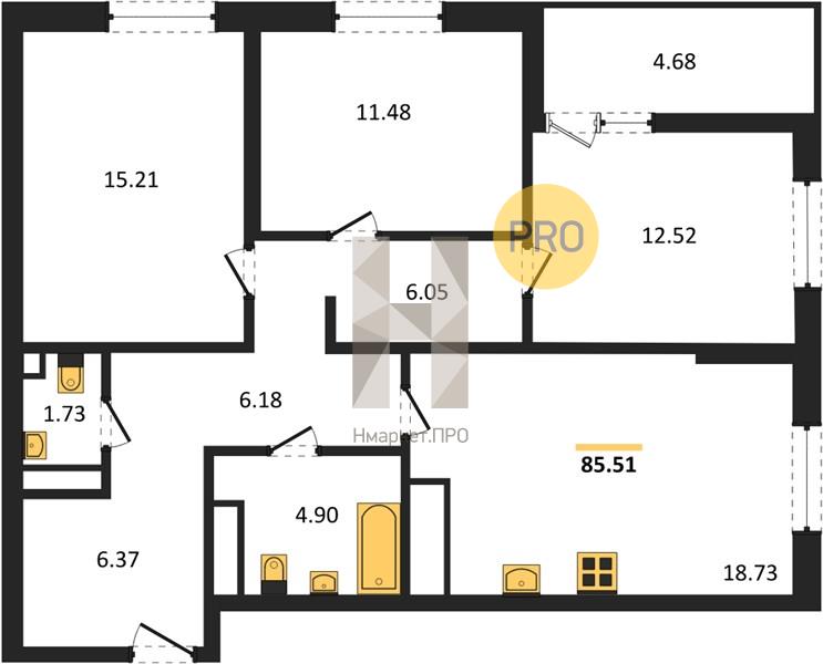 | Общая площадь: | 85.51 м2 |