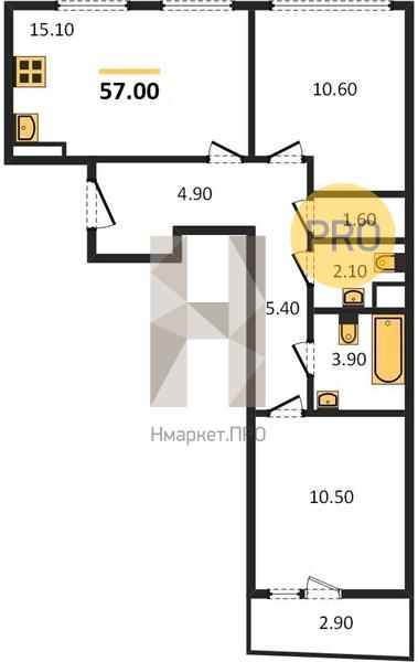 | Общая площадь: | 57.00 м2 |