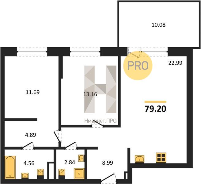 Квартира: 2 к 79,20 кв.м., 2 этаж в комплексе Северное Сияние, 8 очередь, корп.1, сдача: 2кв. , этажей: 15, адрес Екатеринбург г., Кузнецова ул., , Застройщик: АтомСтройКомплекс.