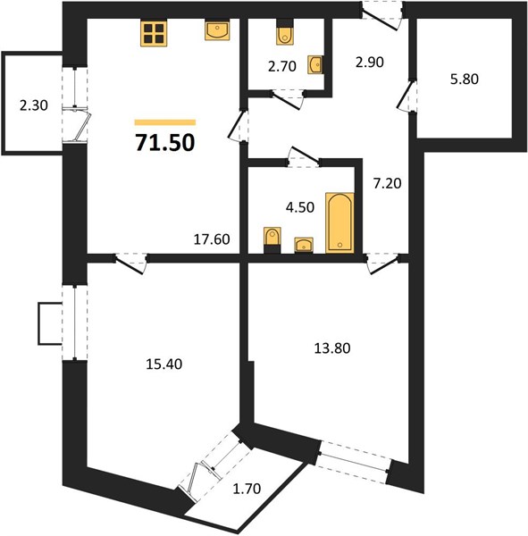 Квартира: 2 к 71,50 кв.м., 2 этаж в комплексе Зеленая горка, 3 очередь, корп.9, сдача: 4кв. , этажей: 8, адрес Екатеринбург г., Леонида Мехонцева ул., д. 6, Застройщик: Зеленая горка.