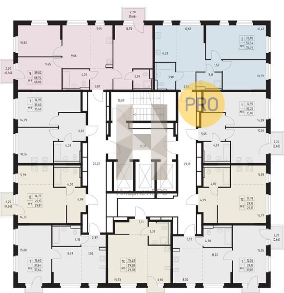 Квартира: 2 к 55,30 кв.м., 19 этаж в комплексе Пайер, 1 очередь, корп.1, сдача: 2кв. , этажей: 30, адрес Екатеринбург г., Летчиков ул., , Застройщик: ГК Самолет.