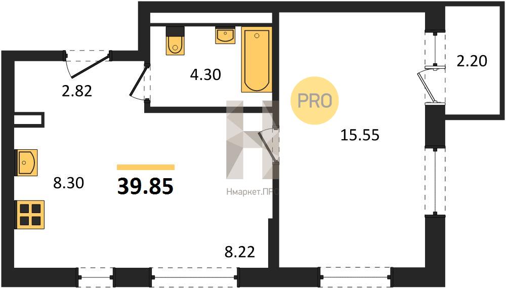 Квартира: 1 к 39,85 кв.м., 4 этаж в комплексе Пайер, 1 очередь, корп.1, сдача: 2кв. , этажей: 30, адрес Екатеринбург г., Летчиков ул., , Застройщик: ГК Самолет.