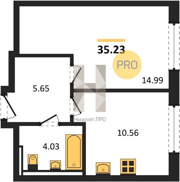 Квартира: 1 к 35,23 кв.м., 8 этаж в комплексе Пайер, 1 очередь, корп.1, сдача: 2кв. , этажей: 30, адрес Екатеринбург г., Летчиков ул., , Застройщик: ГК Самолет.