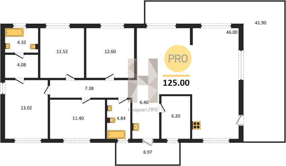 | Площадь кухни: | 46.00 м2 |