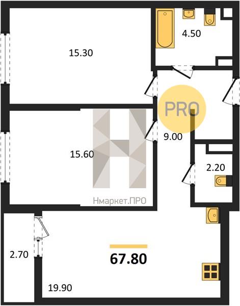 Квартира: 2 к 67,80 кв.м., 6 этаж в комплексе Русь XXI, 4 очередь, корп.1, сдача: 3кв. , этажей: 18, адрес Екатеринбург г., Лоцмановых ул., д. 1, Застройщик: TEN девелопмент.