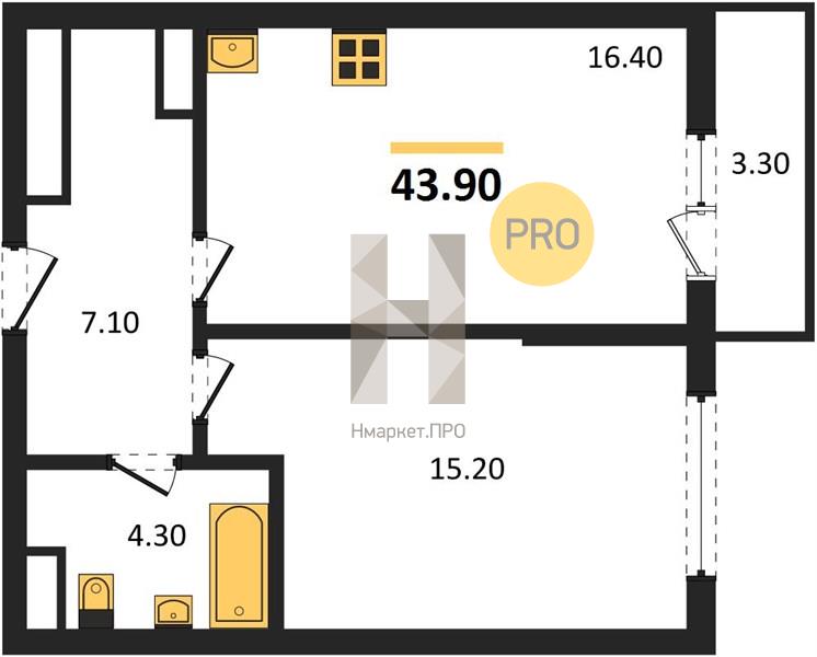 | Общая площадь: | 43.90 м2 |