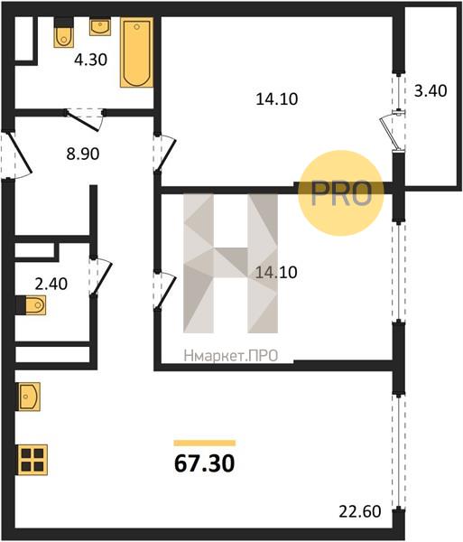 | Общая площадь: | 67.30 м2 |