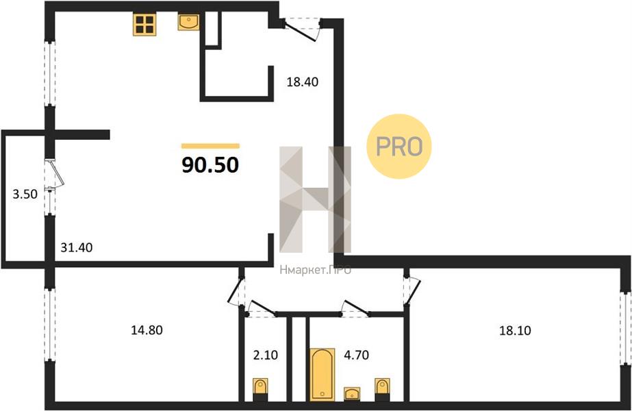 Квартира: 2 к 90,50 кв.м., 8 этаж в комплексе Русь XXI, 4 очередь, корп.1, сдача: 3кв. , этажей: 18, адрес Екатеринбург г., Лоцмановых ул., д. 1, Застройщик: TEN девелопмент.