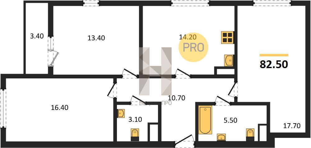 | Общая площадь: | 82.50 м2 |