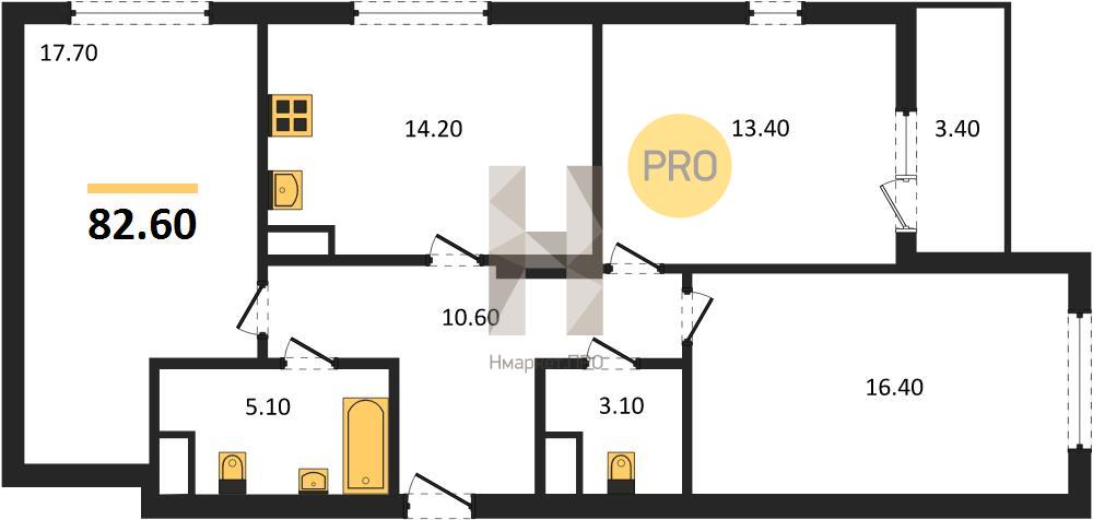 Квартира: 3 к 82,60 кв.м., 7 этаж в комплексе Русь XXI, 4 очередь, корп.1, сдача: 3кв. , этажей: 18, адрес Екатеринбург г., Лоцмановых ул., д. 1, Застройщик: TEN девелопмент.