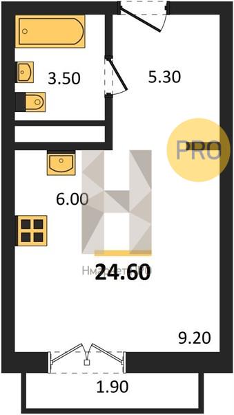 | Общая площадь: | 24.60 м2 |