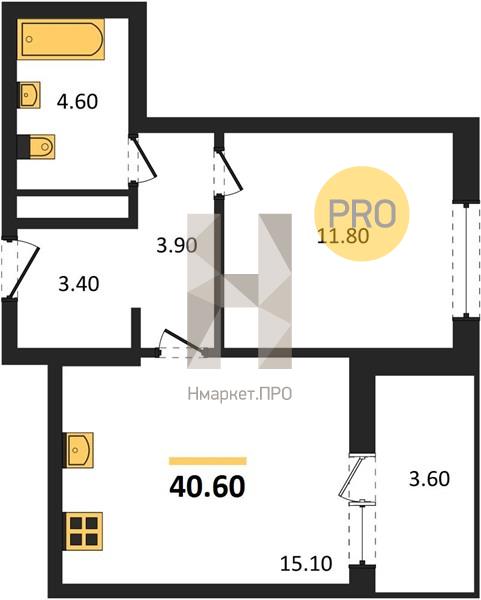 Квартира: 1 к 40,50 кв.м., 9 этаж в комплексе Солнечный, 4 очередь, корп.6.1, сдача: 4кв. , этажей: 15, адрес Екатеринбург г., Лучистая ул., , Застройщик: ГК ЭТАЛОН.