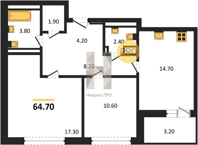 Квартира: 2 к 64,80 кв.м., 10 этаж в комплексе Солнечный, 4 очередь, корп.6.1, сдача: 4кв. , этажей: 15, адрес Екатеринбург г., Лучистая ул., , Застройщик: ГК ЭТАЛОН.