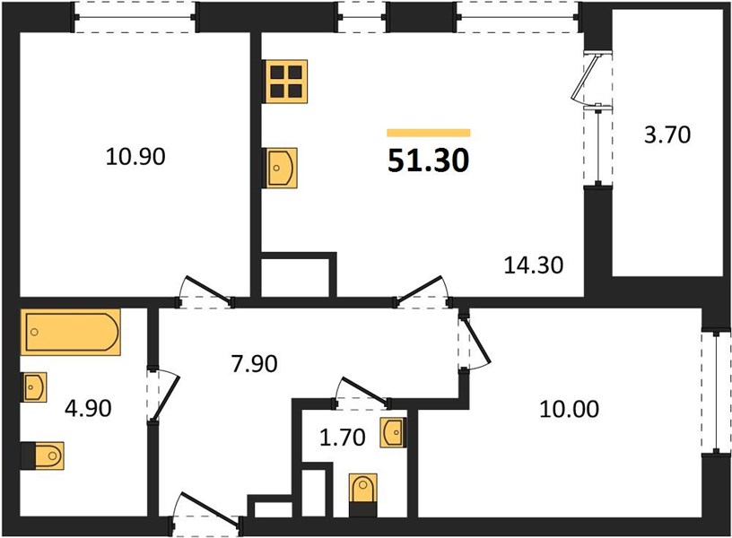 Квартира: 2 к 51,30 кв.м., 15 этаж в комплексе Солнечный, 5 очередь, корп.6.3, сдача: 4кв. , этажей: 16, адрес Екатеринбург г., Лучистая ул., , Застройщик: ГК ЭТАЛОН.