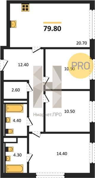 Квартира: 3 к 79,80 кв.м., 5 этаж в комплексе Солнечный, 5 очередь, корп.6.3, сдача: 4кв. , этажей: 16, адрес Екатеринбург г., Лучистая ул., , Застройщик: ГК ЭТАЛОН.