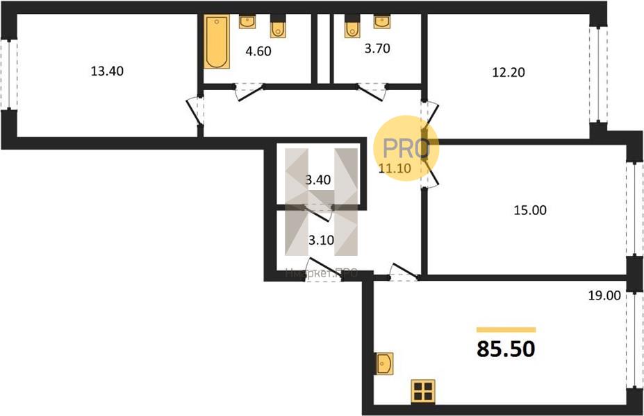 Квартира: 3 к 85,50 кв.м., 5 этаж в комплексе Солнечный, 5 очередь, корп.6.3, сдача: 4кв. , этажей: 16, адрес Екатеринбург г., Лучистая ул., , Застройщик: ГК ЭТАЛОН.