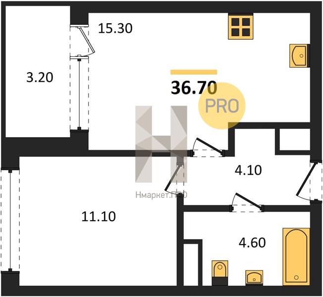 | Общая площадь: | 36.70 м2 |